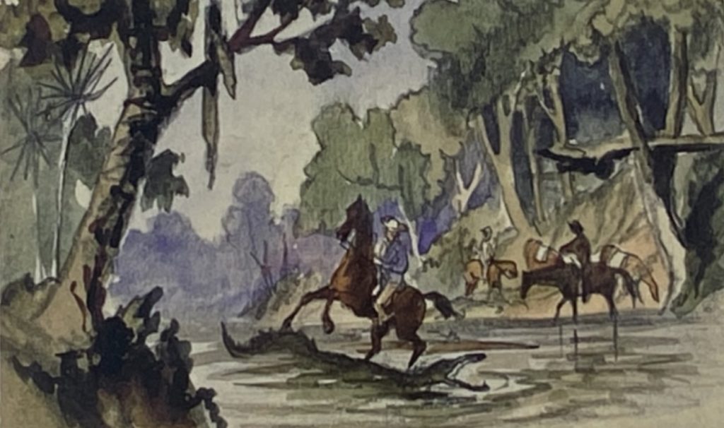 They took fifty horses to transport supplies and ride during the expedition surveys. However, seven drowned, one was “irrecoverably fixed in the mud,” and another died of exhaustion when, wild-eyed, they were forced to swim across three miles of fast-running water to reach land at Point Pearce for an overland journey to the camp.