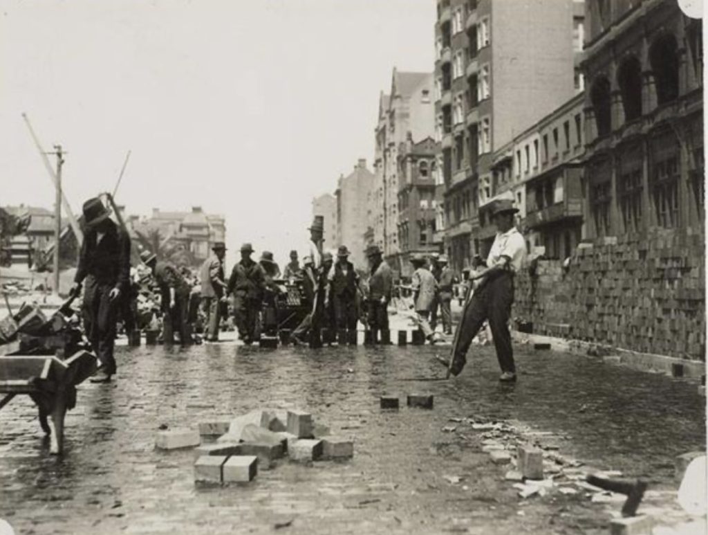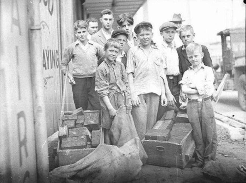 In Sydney, wood paving ceased by 1932 during the Great Depression, although wooden blocks remained in use for some roads until after World War II. Many old blocks found new life as firewood, particularly during economic hardships when young boys scavenged them to heat homes and cook meals.