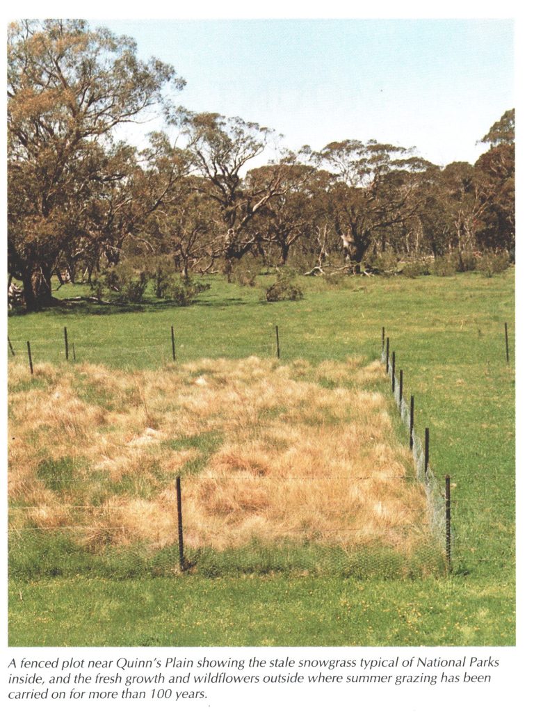 The graziers believed that the scientists overlooked the positive effects of grazing, such as maintaining healthy ground cover through the fertilising action of animal dung, as observed at Rules Point and Dead Horse Gap, and preventing the build-up of dried grass, which hindered spring re-growth and crowded out vital herb species.