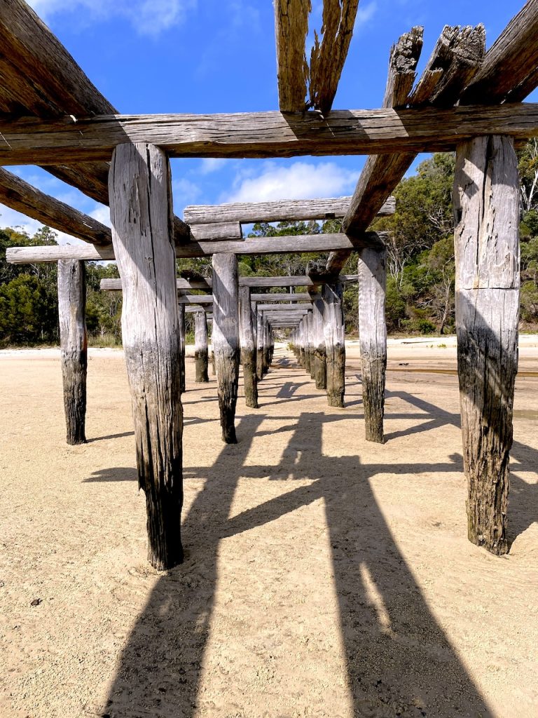 The second assumption is that satinay was already recognised and used as a marine timber in the 1860s. It was not. As the forestry record shows, satinay’s qualities were not adequately understood or exploited until decades later. Also, the first logging on the island targeted only softwoods that could float, as they were tied into rafts and punted across the Great Sandy Strait and up the Mary River to the sawmills. Hardwood logging didn’t start until the late 1870s.